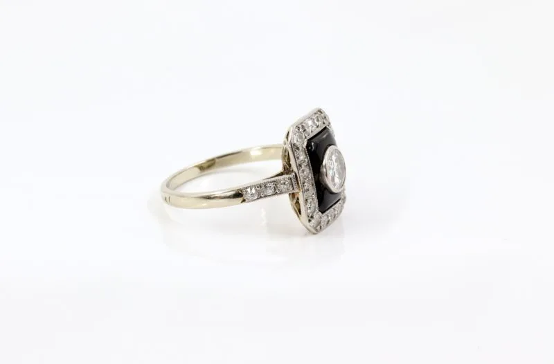 Bague Art déco onyx et diamants