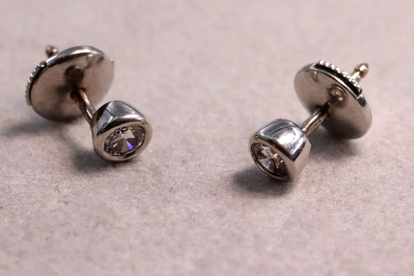 L’indispensable paire de puces d’oreilles en diamants vous est ici présentée en serti clos. Les diamants calibrent 0,20 carats chacun et sont de belle pureté et de belle blancheur. Fermoir système Alpa.