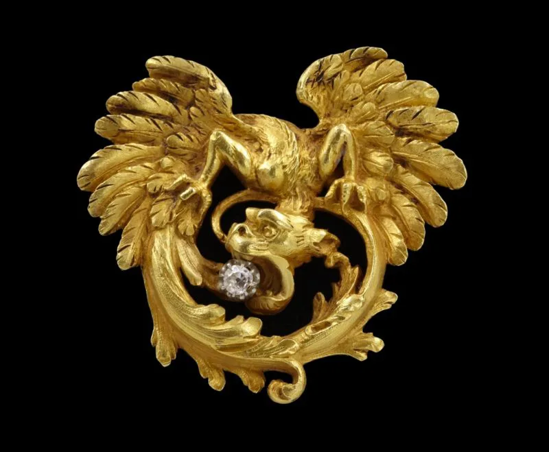 Bien que cette broche chimère ait été vendue, nous avons d’autres broches à motif de chimère et d’autres bijoux Art Nouveau à vous proposer. N’hésitez pas à nous contacter.