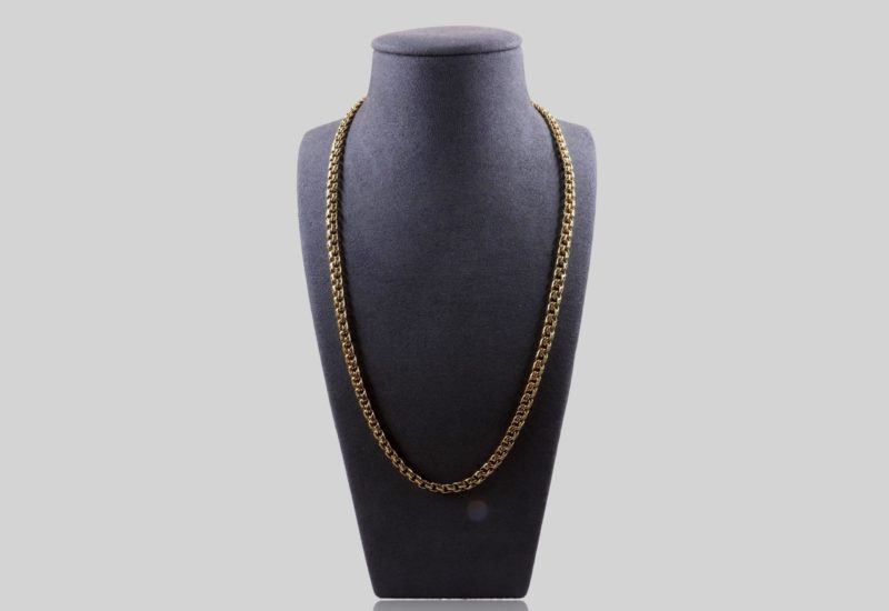 Belle chaîne de montre du XIXe siècle en or jaune composée de maillons ouvragés doublés pouvant se porter en collier. Un collier chic à porter sans modération !