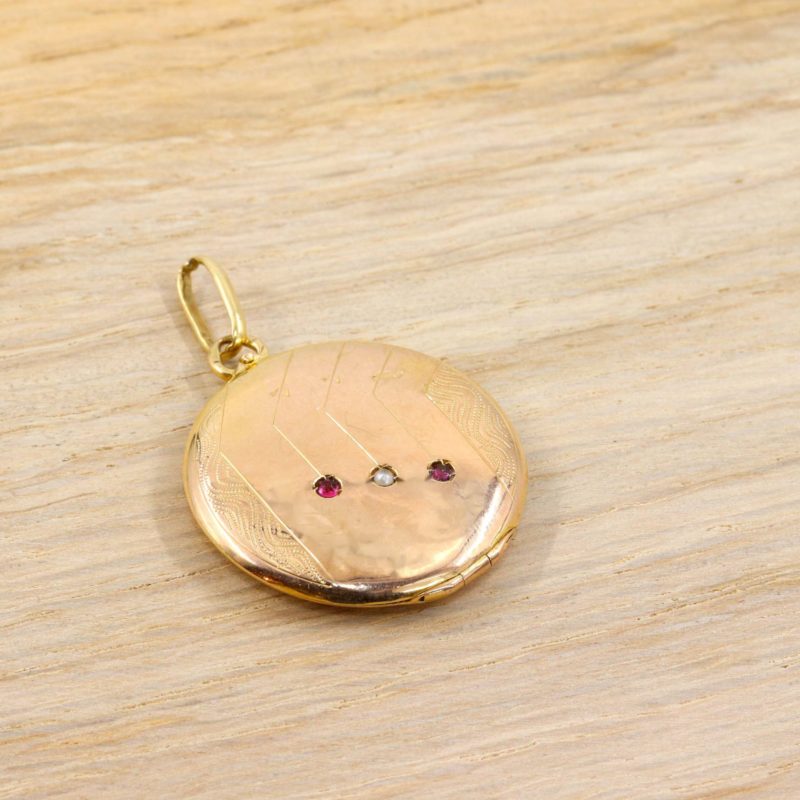 Très beau fermoir écossais ancien en or 9K. Sa forme de coeur bombé, ciselé et surmonté d’un beau grenat ovale facetté en fera un pendentif remarqué sur une chaîne de montre ancienne par exemple.